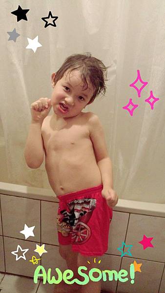 今天度假玩第一天上學。一切算是順利。今天中午就去接他去阿嬤家,所以他心情很好。